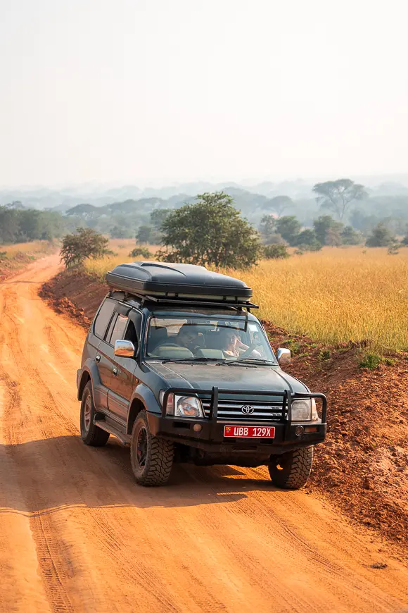 Du erkundest Uganda in einem 4×4, der für echtes Abenteuer gebaut ist. Erwarte kein brandneues Fahrzeug, sondern einen automatischen Landcruiser (V8 oder Prado), der bereits viele Kilometer und afrikanische Pisten hinter sich hat. Diese robusten, unkomplizierten Autos sind gemacht, um jedes Terrain zu meistern – ein Kratzer hier und da gehört einfach dazu und ist Teil des Charmes eines echten afrikanischen Roadtrips.